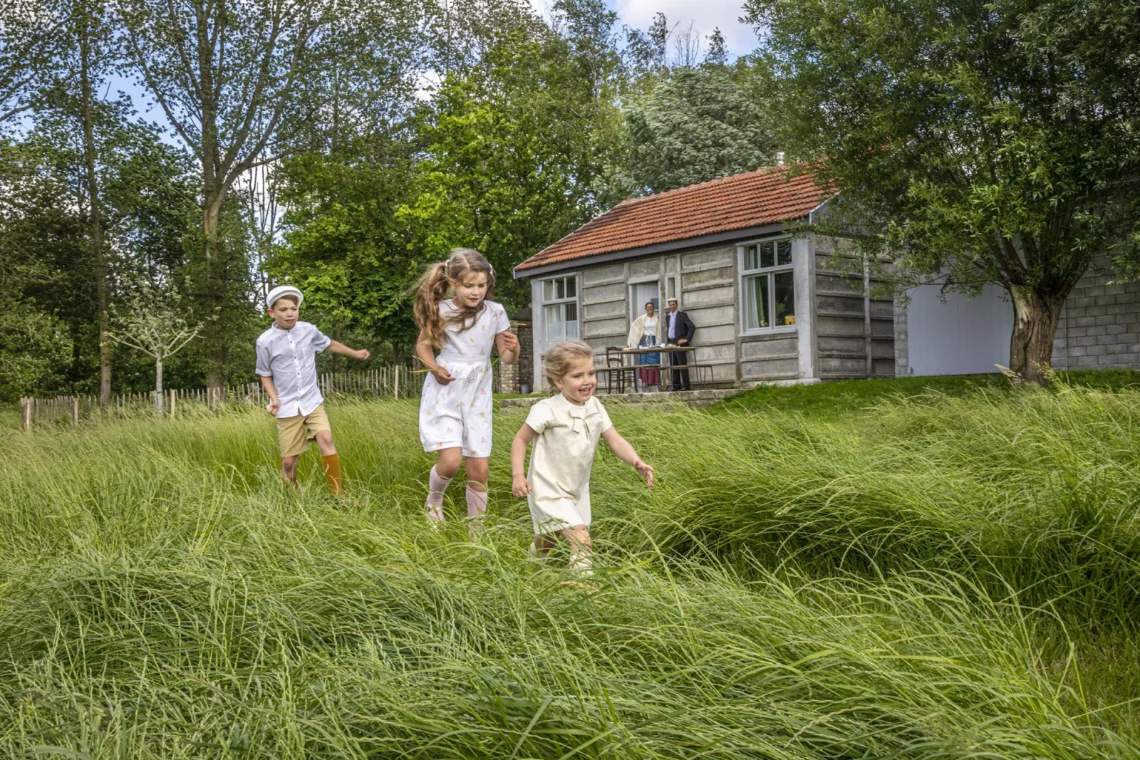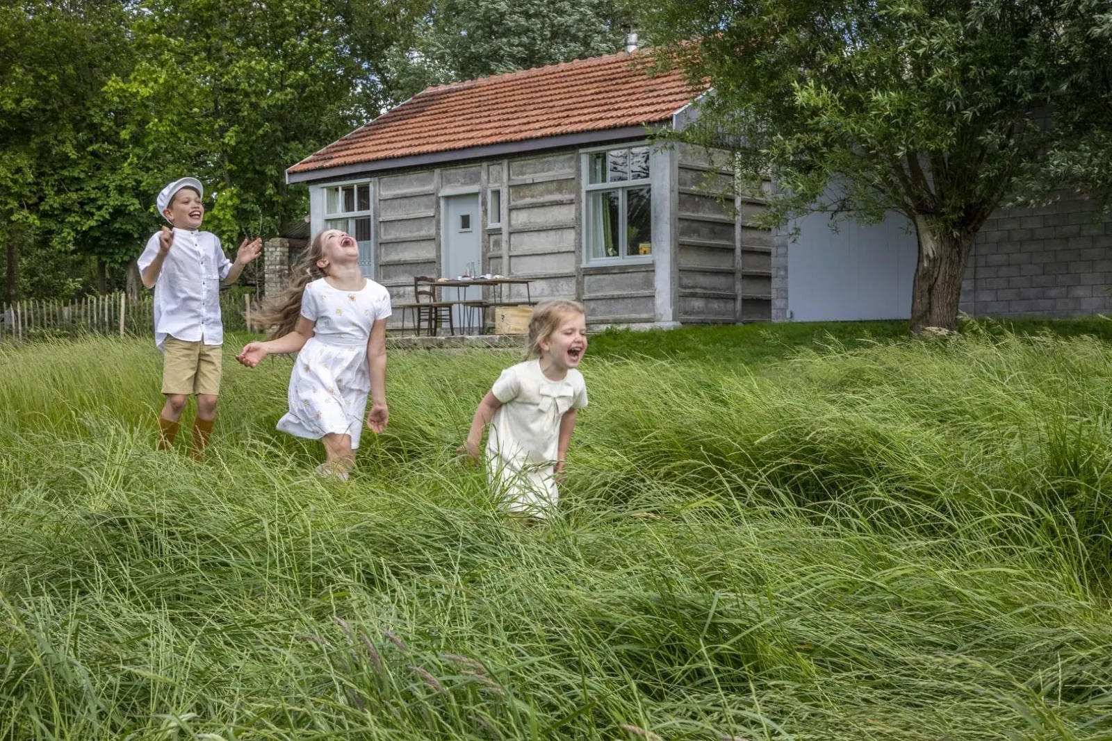 Te midden van de velden, met een speelweide van 1 ha. Een sneukeltuin, een speelbosje, een historische bunker, koeien en schapen. Een echte buiten-vakantie. Waar kinderen nog echt kind kunnen zijn.