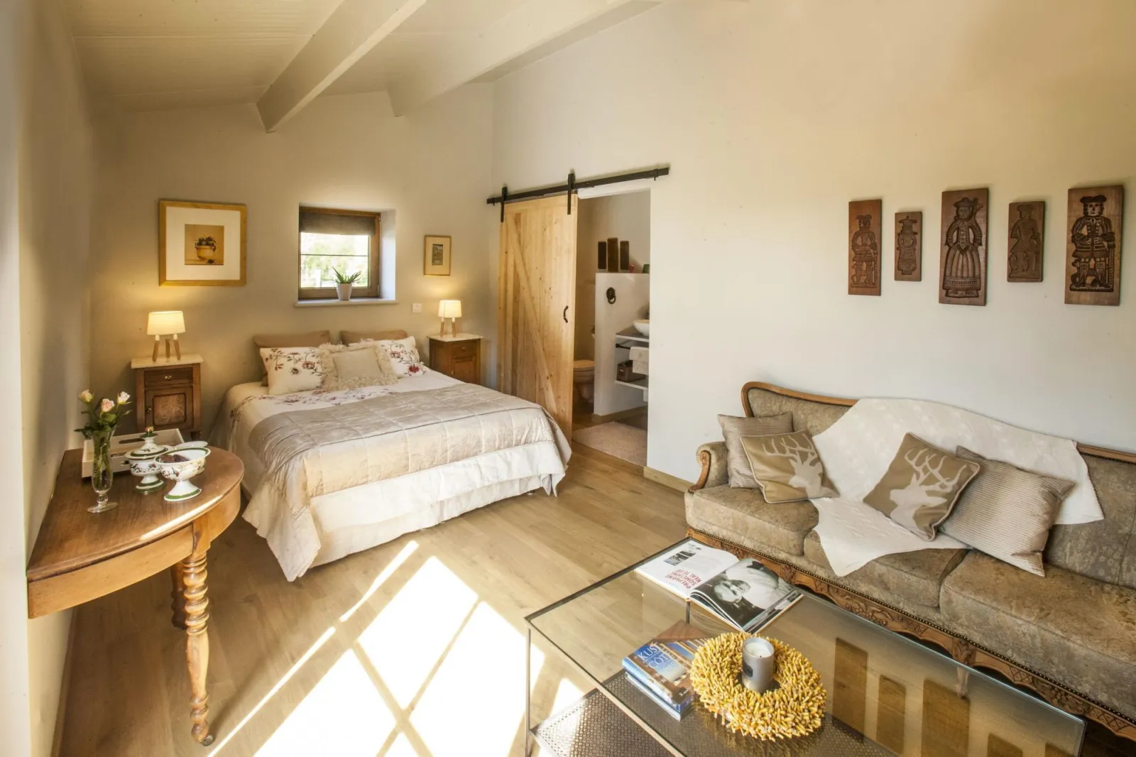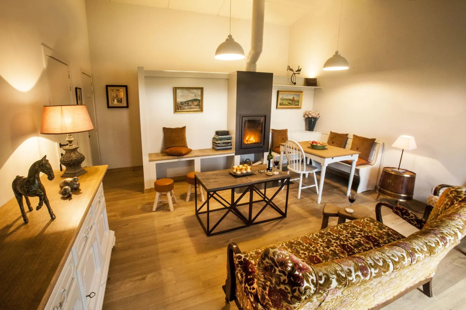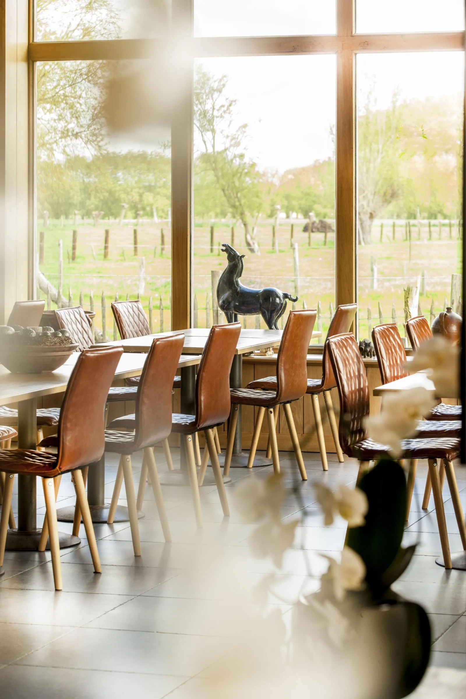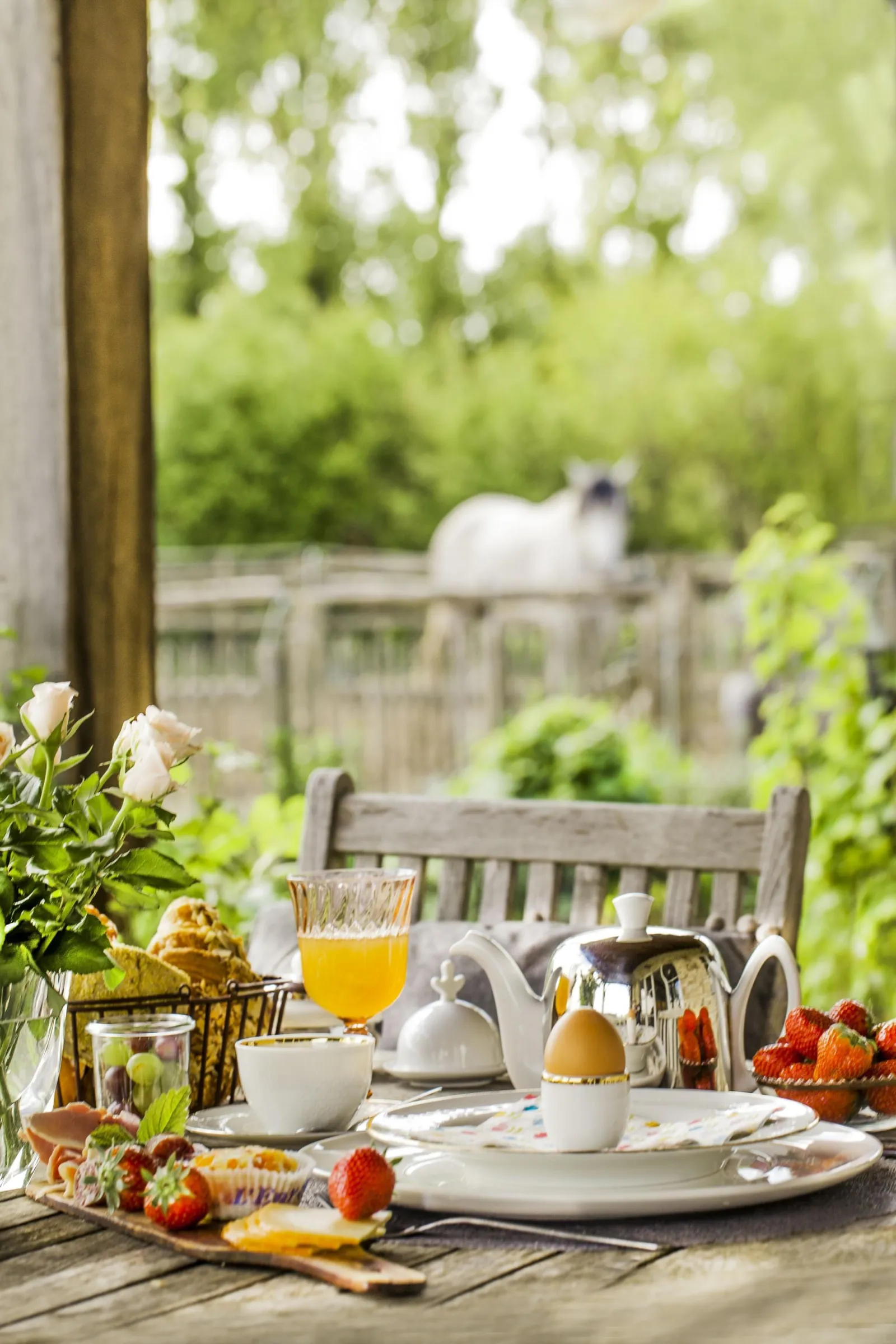 Drie suites (2 personen) en een familiekamer (2 volwassenen en 2 kinderen). In de suites kan een kinderbedje (tot 3 jaar) worden bijgeplaatst. Groepskorting vanaf 4 kamers. 2 laadpalen 24/24 beschikbaar voor je EV. Familiale gastvrijheid in combinatie met een hartelijke sfeer. Stijlvol, ecologisch en comfortabel. Ruime luxekamers waarvan 3 met privéterras. Veel publieke zithoekjes en terrassen. Honden van harte welkom mits kleine opleg van € 10/nacht! Uitzicht op de mooie tuin of het unieke landschap. Ruime tweepersoonsslaapkamers en zeer ruime familiekamer voor 2 volwassenen en max. 2 kinderen. Allen met dubbel bed en stijlvol bedlinnen, zithoek met gratis flatscreen-tv en wifi, privébadkamer met inloopdouche, toilet, badlinnen, haardroger en badproducten, gratis water, thee en koffie. Extra kinderbedjes op aanvraag. Gemeenschappelijke Honesty bar en salon met haard, boeken, gezelschapsspelen. Ruime afgesloten parking en fietsenstalling. Oplaadpunten fietsen. Rijkelijk streekontbijt inbegrepen. Een stevig ontbijt met streekeigen natuurproducten verschaft je alles wat nodig is om de dag goed te beginnen. Geregeld wordt ook zelf gebakken: brood, speculaas, cakes en taarten… laat je dus verwennen en geniet! Het uitgebreide ontbijt wordt tussen 8u30 en 10u00 uur op verzoek geserveerd in de kamer (+ € 5 p.p.), anders in de gezellige ontbijtkamer of bij goed weer op het terras, overal met uitzicht over de weidse velden.