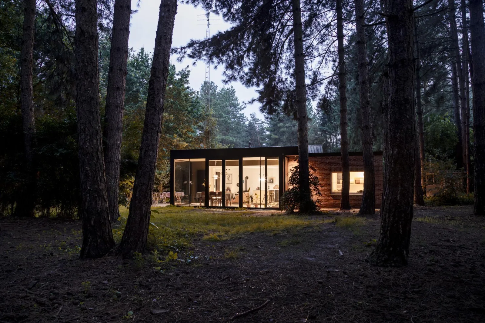 Het Boskot heeft een ruime woon- en leefkamer met open keuken. In die keuken is echt alles voorzien, je komt er niets te kort. Vanaf de eettafel heb je trouwens ook het gevoel dat je midden in het bos en de natuur zit vanwege de kamerhoge ramen rondom. Alles in het boskot is op elkaar afgestemd en de gezellige houtkachel bij de zithoek maakt het warme gevoel compleet.