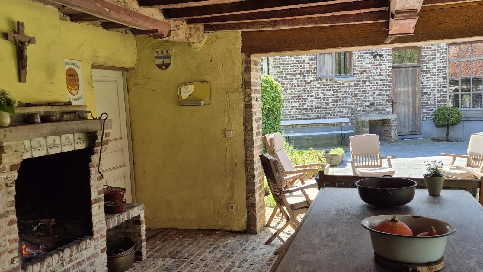 Landelijke woning in een rustig straatje met grote tuin vol fruitbomen, groenten en kruiden. Er zijn tal van rustplaatsen in onze tuin, ook bij minder goed weer kan je gezellig bij het haardvuur buiten genieten.