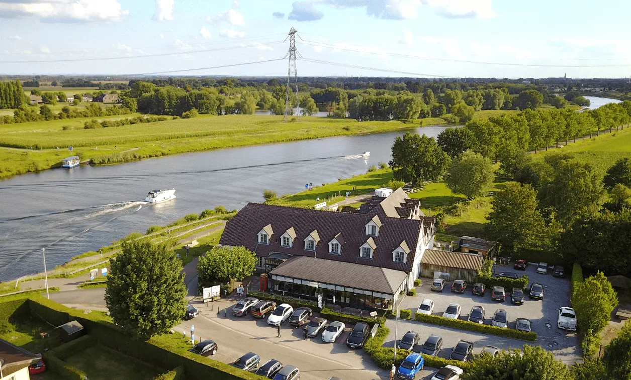 Aan de oevers van de Maas ligt hotel De Spaenjerd. Je geniet er van het landschap, de rust en de Maaslandse gezelligheid. Het veerpontje, zichtbaar van op het terras, vervoert de fietsers van Belgisch Limburg naar Nederlands Limburg.
