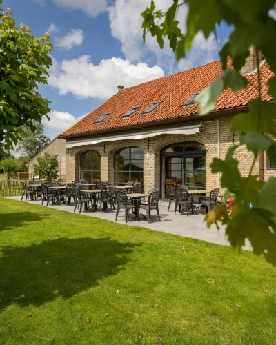 Met zijn twee, met familie of vrienden, we brengen voor iedereen graag de zon in huis. De oude stallingen zijn gerenoveerd tot gastenkamers, het vroegere wagenkot tot een sfeervolle orangerie en de paardenstal is nu het salon. De U-vormige hoeve met binnenplaats is compleet met fietsstallingen, speeltuin, polderschuur, trampoline, go-carts en een zuidgericht terras met tuin. Ontdek ons lekkerbekarrangement, fietsarrangement of het winterwandelarrangement.
