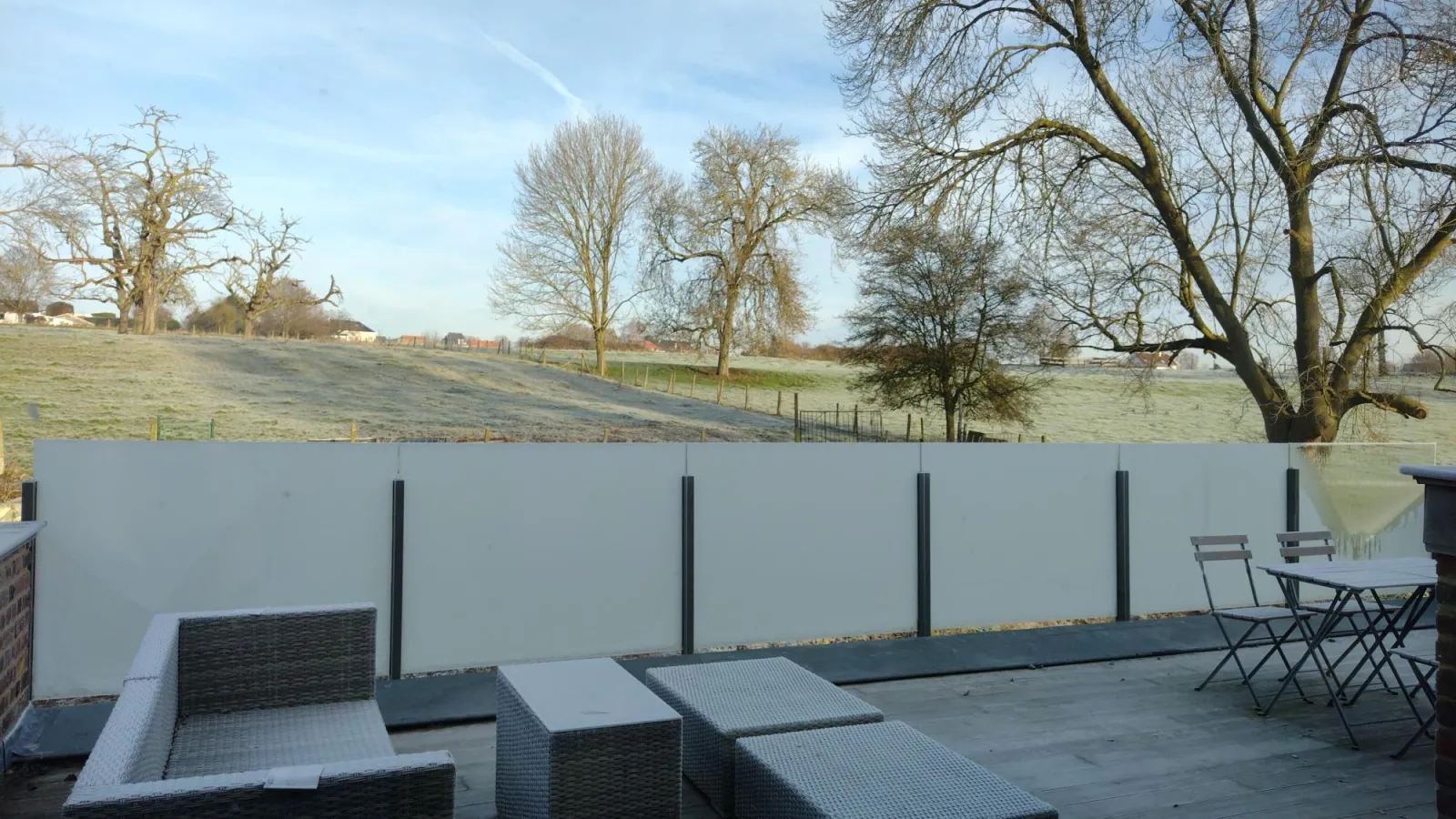 4 grote terrassen met tuinmeubilair.