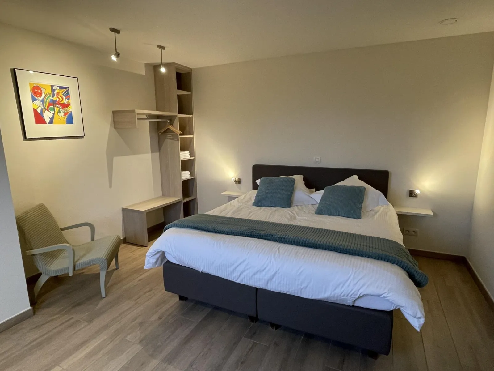 - 1 slaapkamer op het gelijkvloers met een dubbel bed en een aparte badkamer