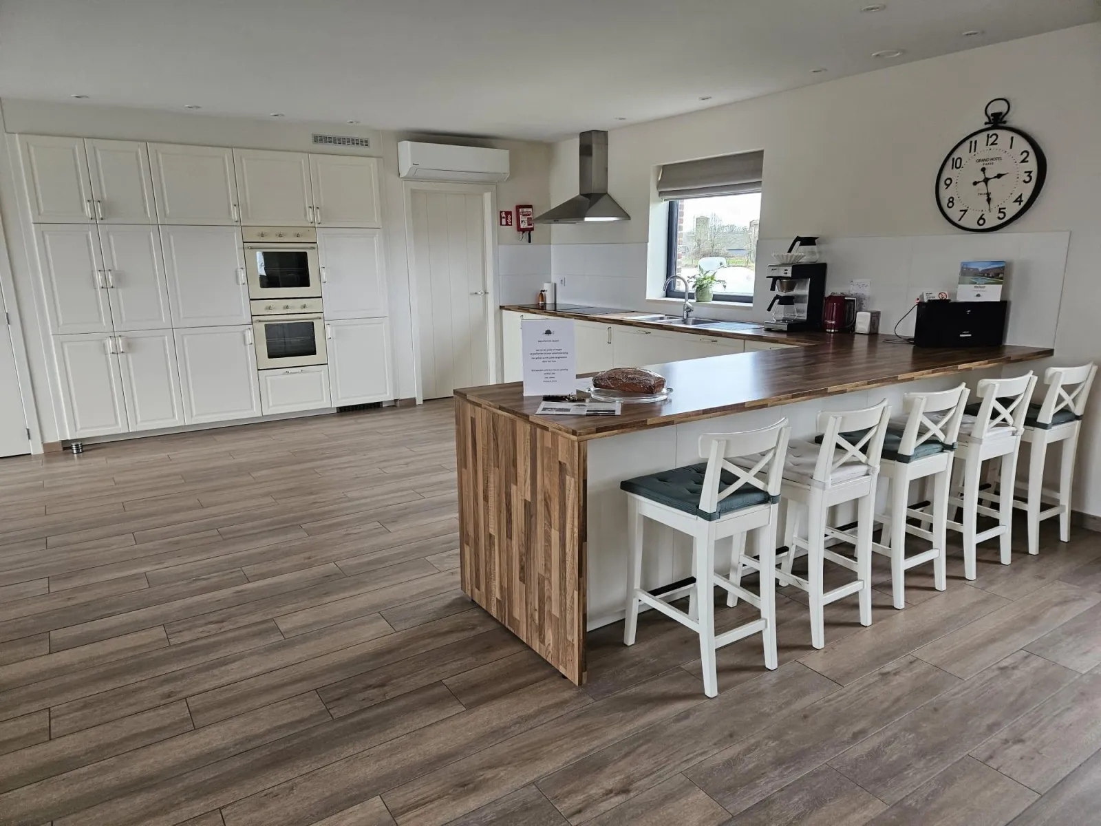 - Ingerichte keuken met twee inductievuren, twee ovens, vaatwasser en een grote koelkast, er is nog een extra koelkast voorzien in de garage. Moderne Weber barbecue.