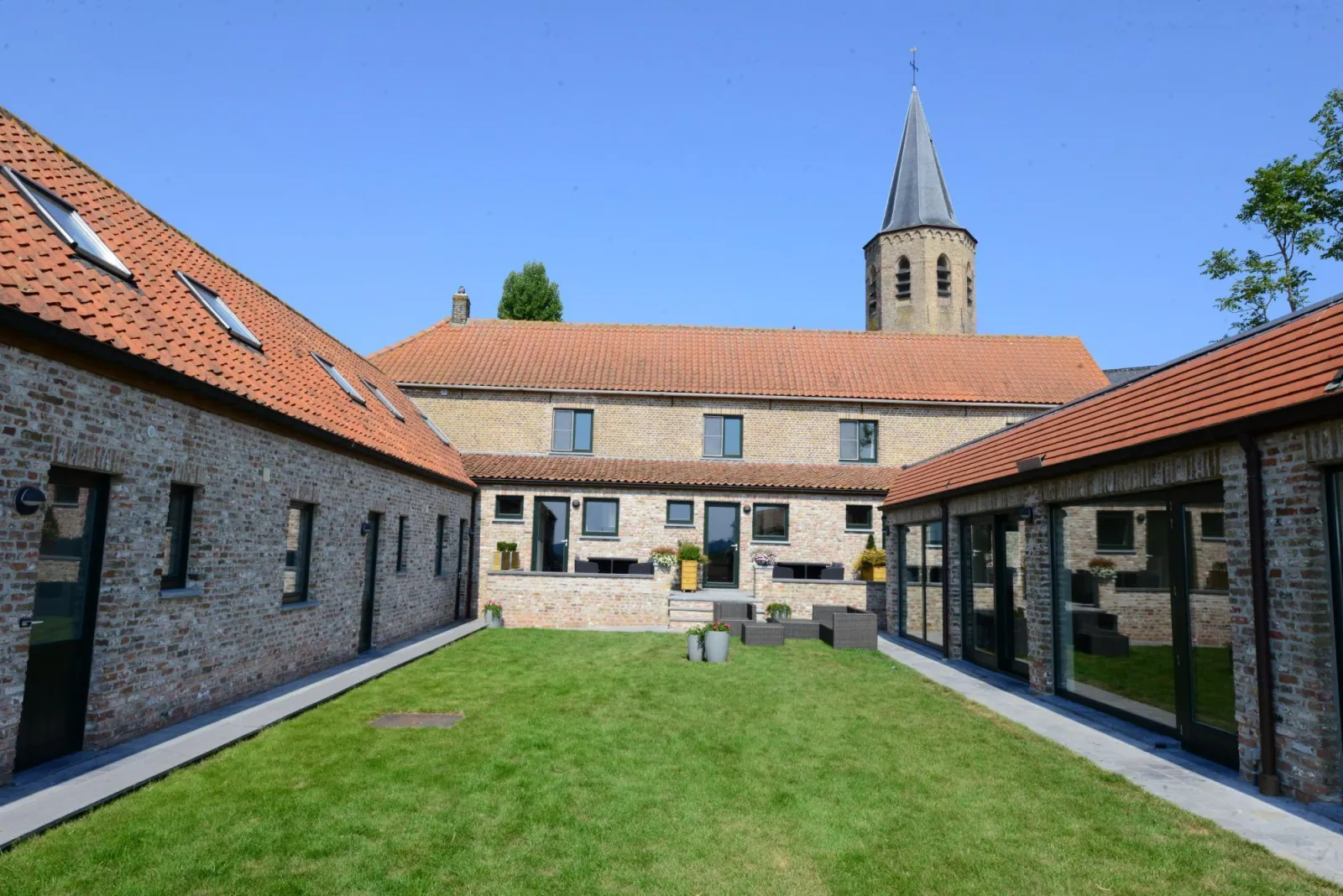 7 aparte vakantiewoningen (4-6 p.) + 1 woning (4p) en een polyvalente zaal incl. bar, keuken, sanitair - unieke mix van privacy en mogelijkheid tot groepsinteractie in de Oudlandpolder tussen Brugge en de Kust.