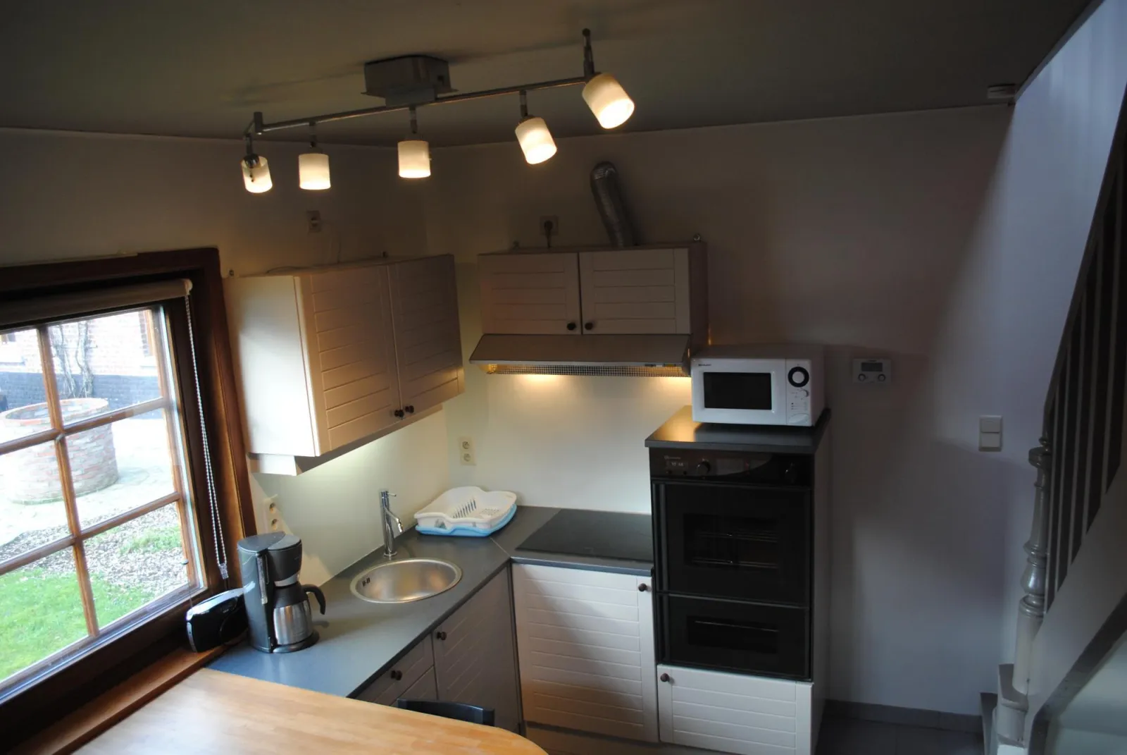 Je komt 't Huizeke binnen in de keuken. Deze omvat naast een elektrisch vuur met dampkap, eveneens een grote oven, vaatwas, microgolf, senseo en koelkast. De eettafel, waar het gezellig eten is, staat onder het raam met zicht op onze voortuin. De badkamer is voorzien van toilet, wastafel en douchecabine. Op de eerste verdieping een klein, maar knus salon met zetel en TV boven het trapgat. De tweepersoonsslaapkamer met airco en grote inbouwkast bevindt zich juist naast het salon. In de kast in het salon vind je wat lectuur, gezelschapsspelen en informatie over de ruime omgeving. Wil je iets opzoeken op het net ... wifi is gratis ter beschikking. Naast de parking kan je op het grasveldje rustig genieten van wat buitenlucht. Of wil je ons BBQ-toestel gebruiken? Je vraagt het maar! Fietsen kunnen in onze garage gestald worden.