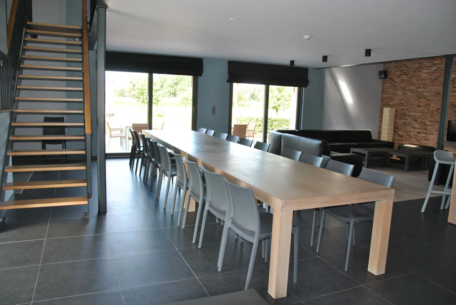 Het verblijf beschikt over 8 slaapkamers, een ruime eet- en leefruimte waar 22 personen gezellig samen kunnen eten. Er is een grote omheinde tuin met speeltoestellen en groot sportveld . Er is een grote verwarmde binnenspeelruimte beschikbaar.