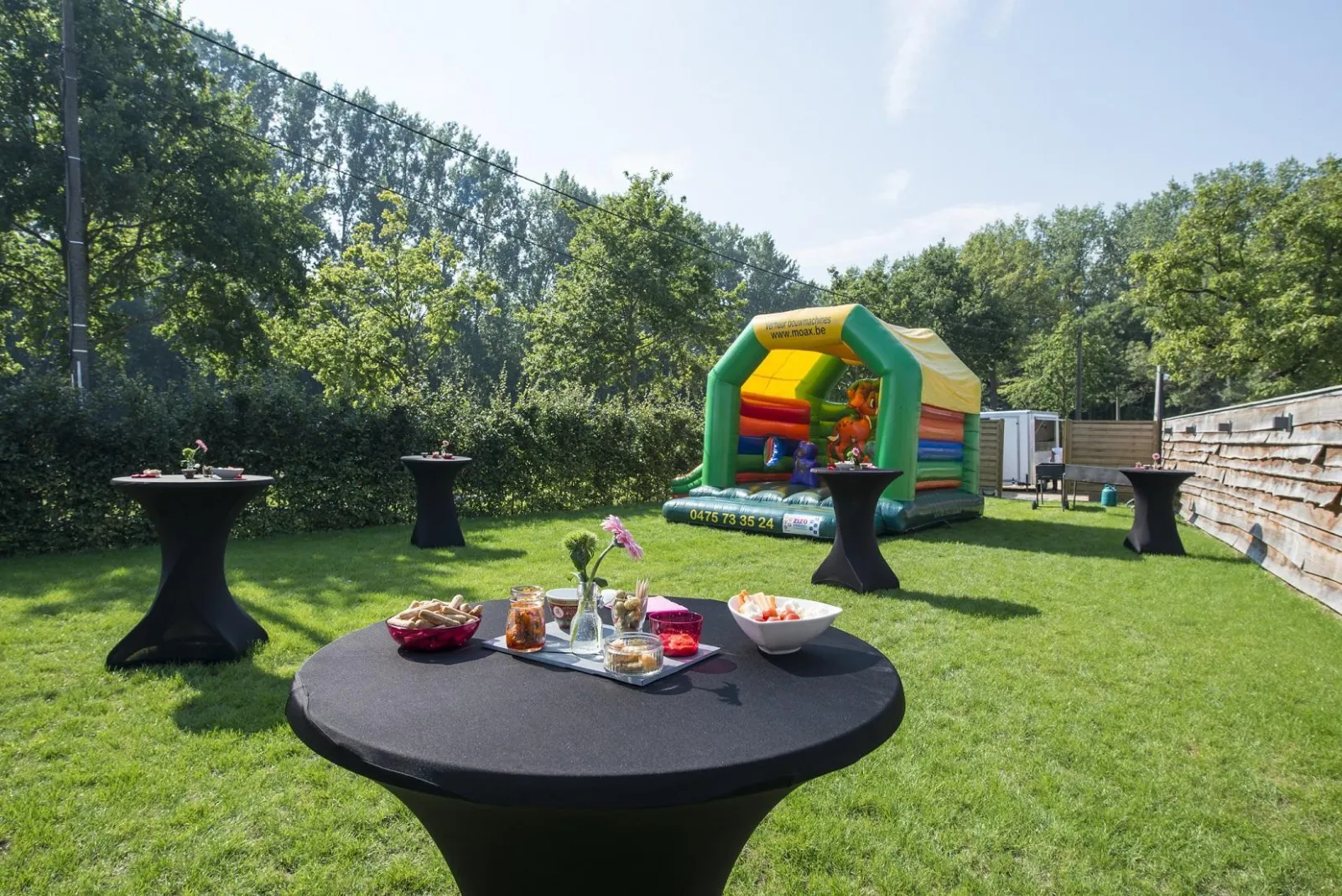 De volledige site is 6000m², op een heel rustige locatie met vergezicht op de velden en de bossen. Er zijn meerdere buitenterrassen en een overdekte (verlichte) schuur waar je ook in de winter kan BBQ'en en in de zomer steeds kan schuilen bij slecht weer. Er zijn 3 petanquebanen, waarvan 1 buiten en 2 overdekte en verlichte binnenbanen. Diverse Schommels, trampoline, een grasplein om te voetballen, 4 gocarts, 2 kinderfietsen enz... zorgen ervoor dat de grote en kleine kinderen de tijd van hun leven beleven. Er is een verwarmd zwembad (verwarming afhankelijk van de buitentemperaturen), afgeschermd en ingesloten . De bijhorende poolhouse heeft gescheiden kleedkamers, een douche en toilet. Elke gast ontvangt een bundel met alle mogelijke activiteiten, droppings, zelf uitgestippelde wandel en fietstochten, Lozerlodge trophy, ...