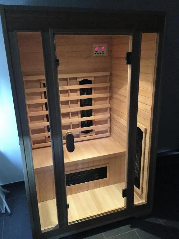 - Slaapkamer gelijkvloers: stapelbed (afmetingen zie guestapp) + infraroodsauna. kinderbed en kinderstoel