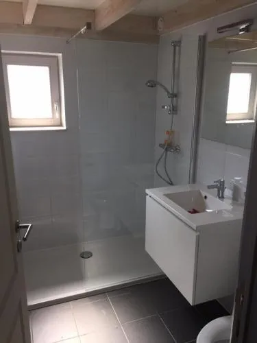 - Badkamer: inloopdouche, met lavabo en toilet (elektrische verwarming), haardroger.