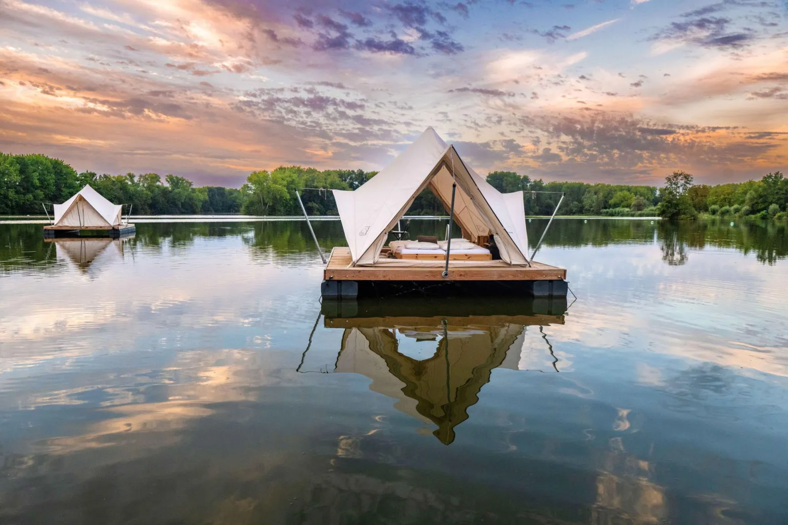 Verspreid op het Donkmeer liggen er 5 vlotten. Elk vlot is ongeveer 25m2 groot en bestaat uit een tent en een groot terras. Wij voorzien:
